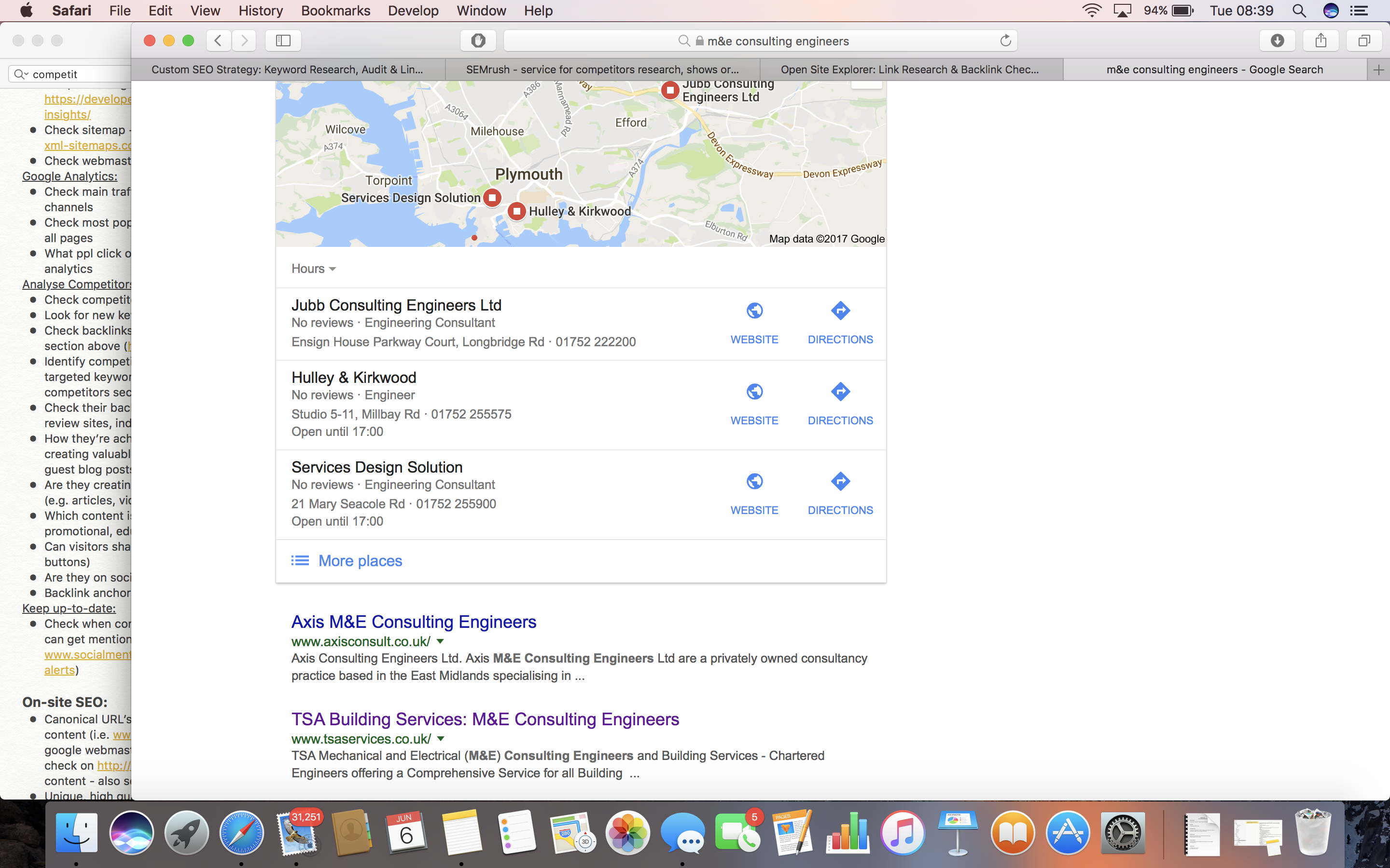 Unrelated to the PPC ad campaign, but shows a #2 ranking in the google search results for the competitive keyword 'm&e consulting engineers':